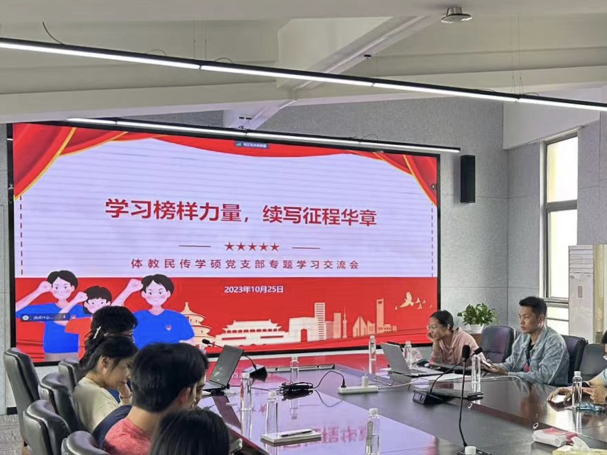 为深入学习感悟习近平新时代中国特色社会主义思想,贯彻落实党的二十大精神和学校第十四次党代会精神,发挥优秀党员的先锋模范作用,增强党员使命与责任感。2023年10月25日下午,性直播 性直播 体教民传学硕党支部于性直播 四楼会议室以“学习榜样力量,续写征程华章”为主题开展党日活动,会议由党支部组织委员张泽阳主持。
