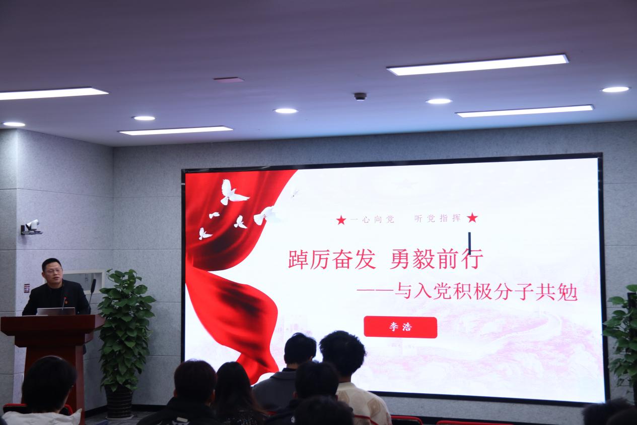 李浩以“踔厉奋发,勇毅前行—与入党积极分子共勉”为主题为入党积极分子培训班开展了微党课,并提出了“中国共产党为什么能?”“入党积极分子怎样才能行?”两个思考问题。首先,他探讨了中国共产党之所以能够取得成功的原因,强调了对马克思主义的信仰和对社会主义、共产主义社会的坚定信念。他引用了方志敏、焦裕禄、邱少平、钱学森、牛犇、雷锋等优秀典范,强调全心全意为人民服务的初心和使命。其次,他提出了“入党积极分子应该如何行动”的问题,鼓励他们了解支部生活,并把培训班当作契机参与支部活动,并通过压担子,作奉献,看实效,挖掘优秀同志向组织靠拢。